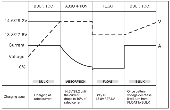 பேட்டரி கட்டுப்பாடு (3-நிலை பேட்டரி சார்ஜர்கள்) மொத்த / உறிஞ்சுதல் / மிதவை