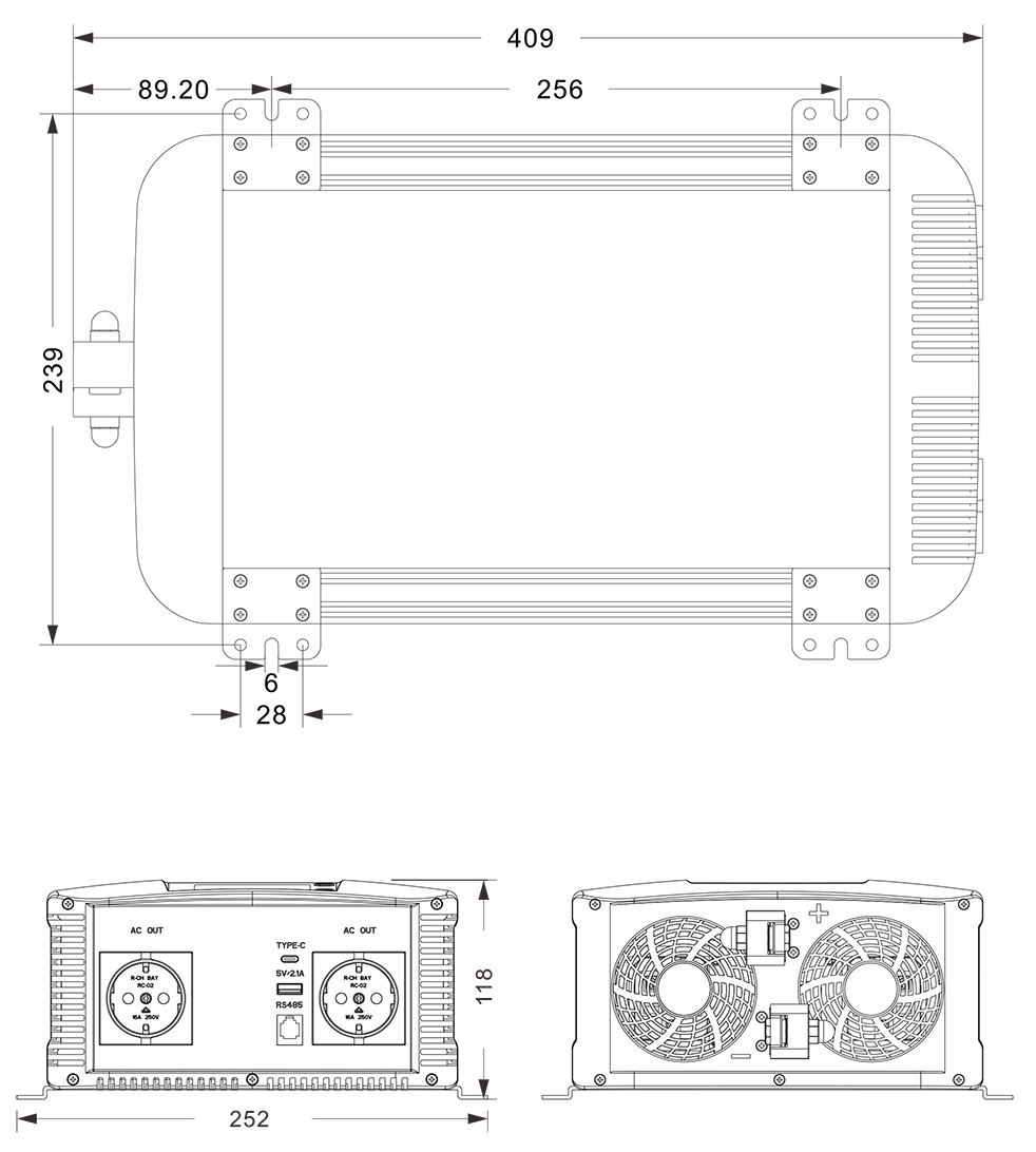 இயந்திர வரைபடங்கள்:(409x252x118மிமீ)