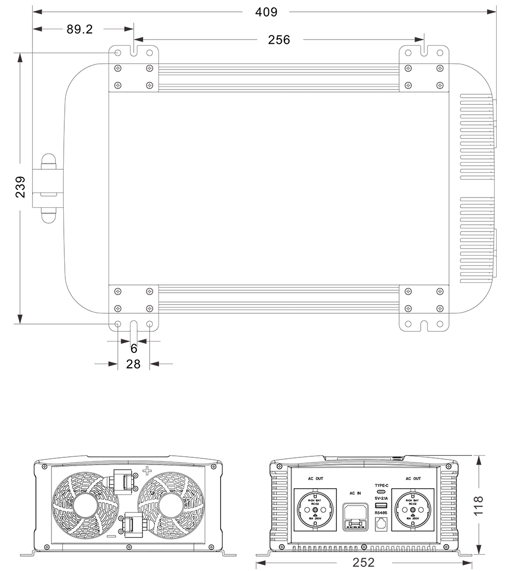 இயந்திர வரைபடங்கள்:(409x252x118 மிமீ)