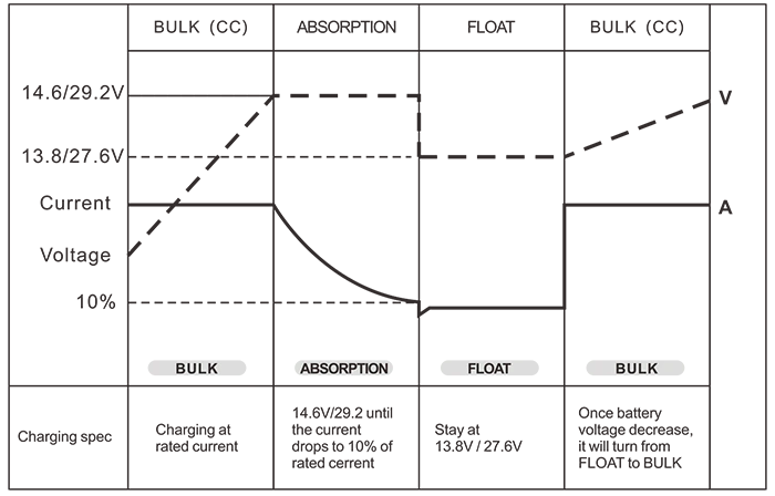 பேட்டரி கட்டுப்பாடு (3-நிலை பேட்டரி சார்ஜர்கள்) மொத்த / உறிஞ்சுதல் / மிதவை
