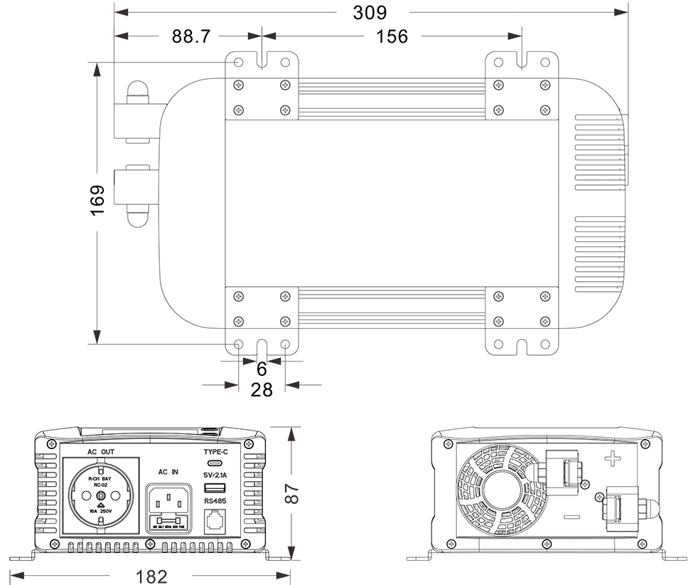 இயந்திர வரைபடங்கள்:(309x182x87mm)