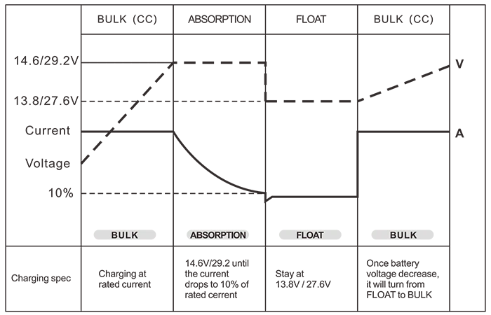 பேட்டரி கட்டுப்பாடு (3-நிலை பேட்டரி சார்ஜர்கள்) மொத்த / உறிஞ்சுதல் / மிதவை