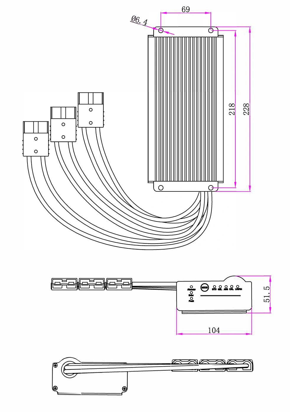 இயந்திர வரைபடங்கள்:(228x104x51.5 மிமீ)